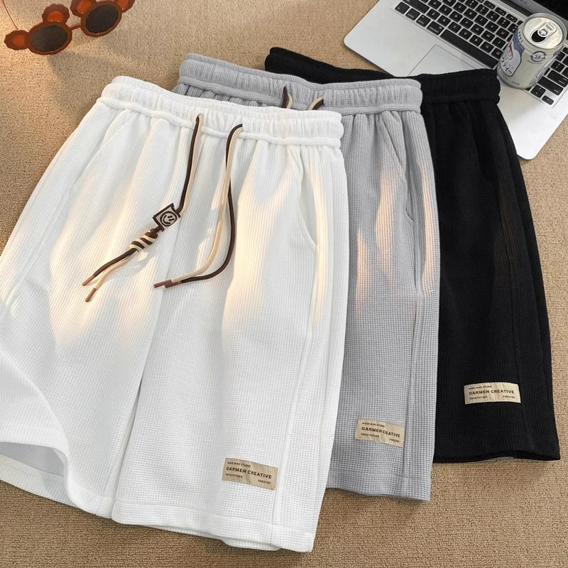 ワッフル半ズボン男性夏の薄いタイプのファッションブランドのゆったりした大きいサイズの中ズボンのアメリカのスポーツの男性のカジュアルな5分のズボンの男性