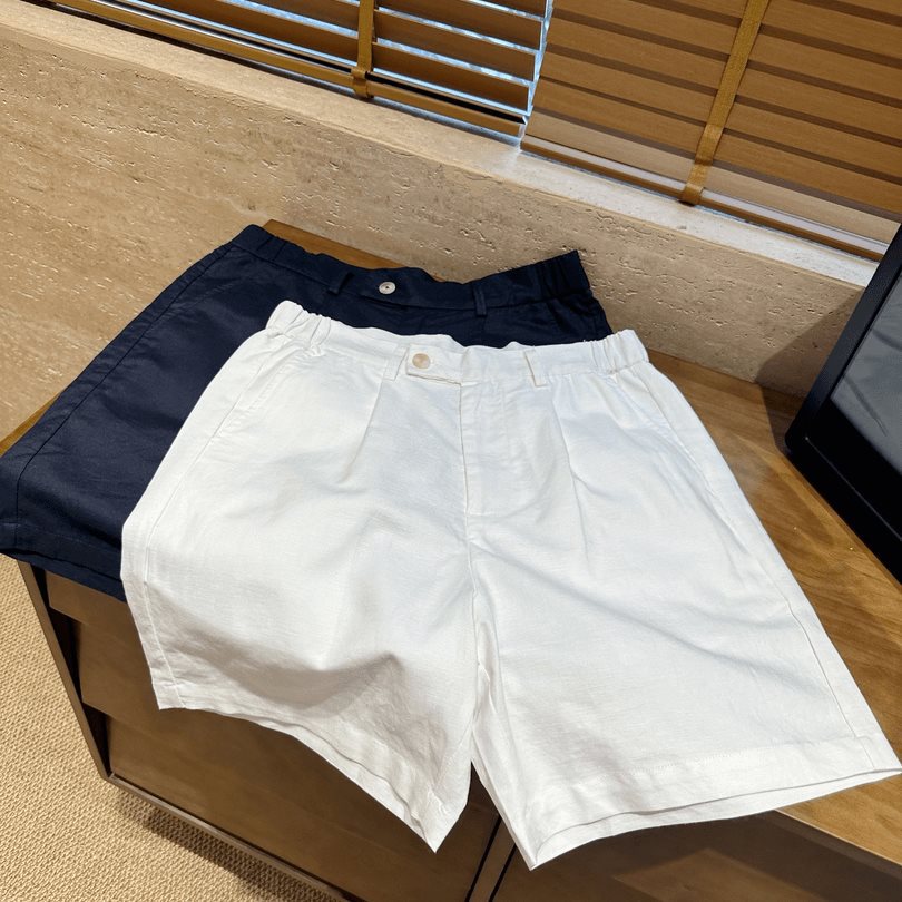 オールドマネースタイル ホワイト コットンとリネン ウエストゴム 5点ショーツ メンズ 夏 薄手 ビジネス 通勤 カジュアルパンツ