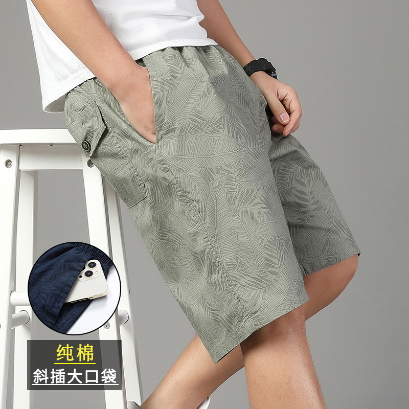 メンズ夏用カーゴショーツ、薄手、ゆったり、トレンドブランド、5点パンツ、純綿プリント、カジュアルストレートミッドパンツ、ホーム