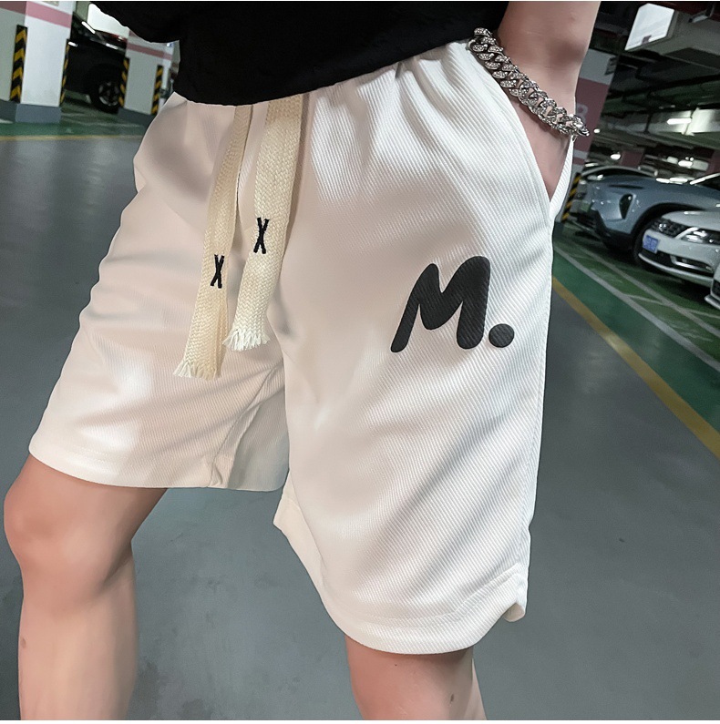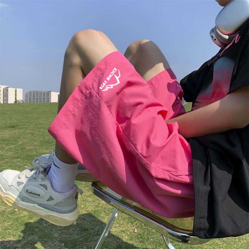2024夏スポーツパンツ男性香港風百合カジュアルパンツカップルゆるい五分ズボン微弾ビーチパンツ潮