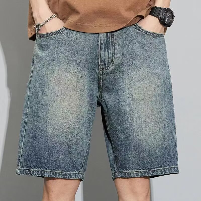 美式复古蓝色牛仔短裤男士直筒中裤2025夏季薄款宽松休闲五分裤男