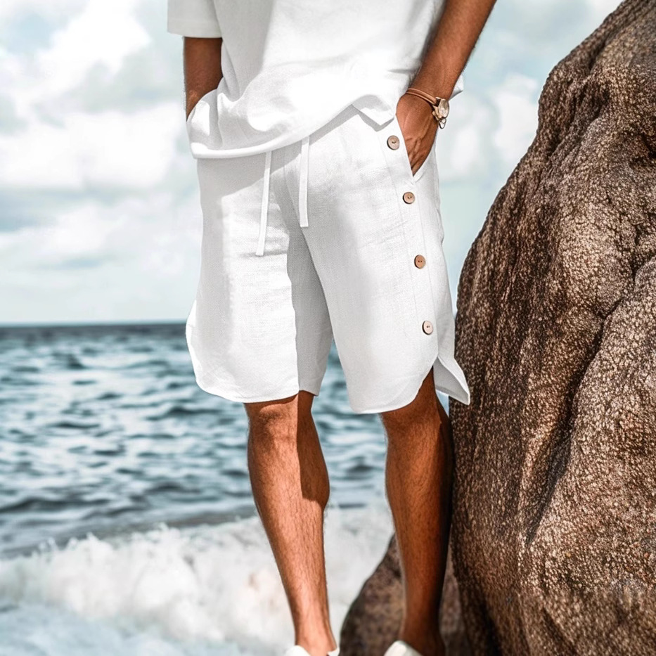 男性亜麻斜めポケット純色快適通気運動屋外日常半ズボン