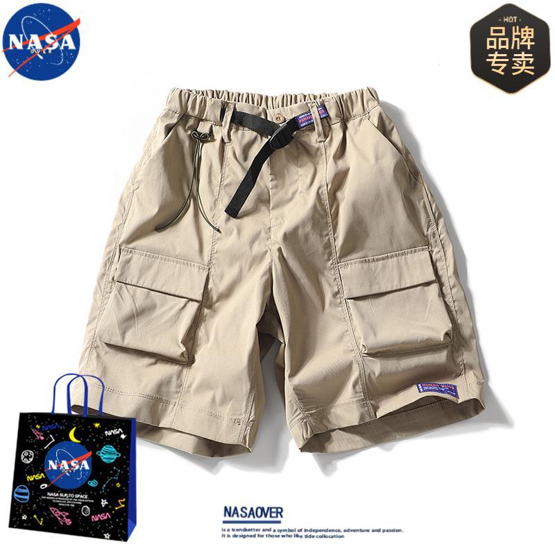 NASA連名夏工装半ズボン男性日系潮牌薄金ストレートカジュアル多ポケット高級五分ズボン