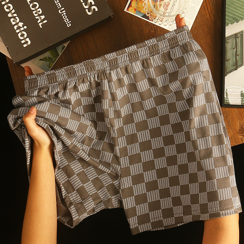 メンズアローパンツホーム下着卸売綿織チェック柄ボクサー夏のビーチパンツルーズボクサーパンツ