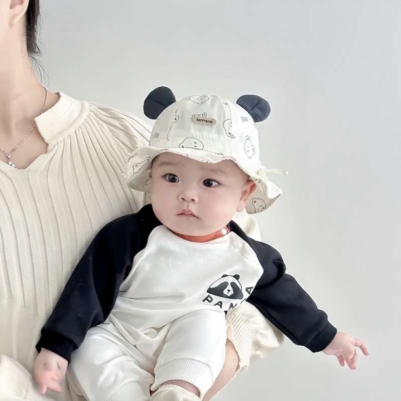 ベビー帽子かわいいプリント熊萌春秋男女赤ちゃん漁師帽子春型乳幼児ネット帽子日よけ