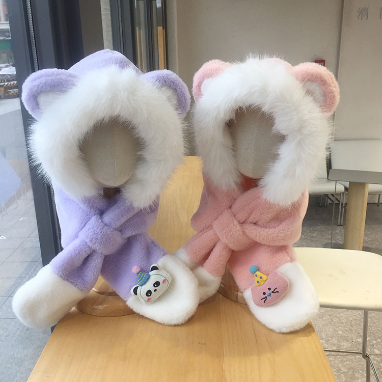 子供用ベアーマスク帽子子供用スカーフ帽子手袋一体ぬいぐるみ耳当て冬保温防風ネット赤