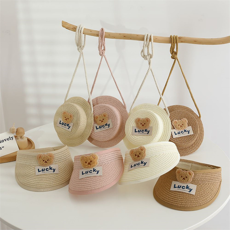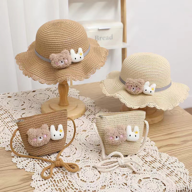 新品麦わら帽子バッグセット子供夏日よけ日焼け止めキャップかわいい超萌え子供漁師帽子小銭入れ