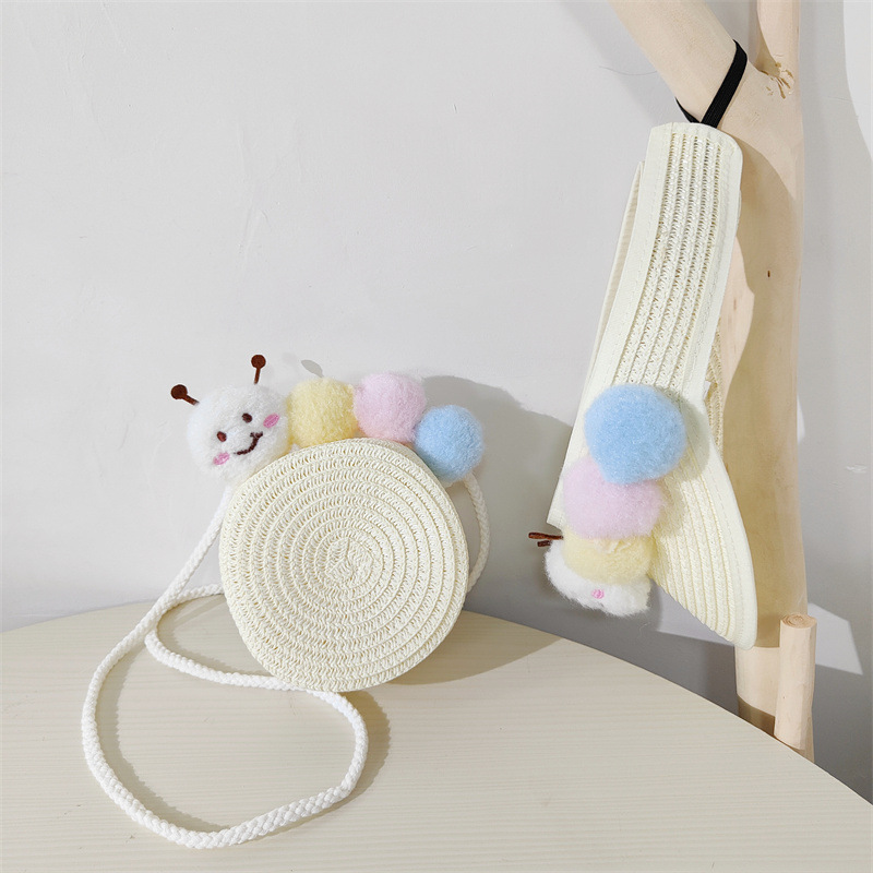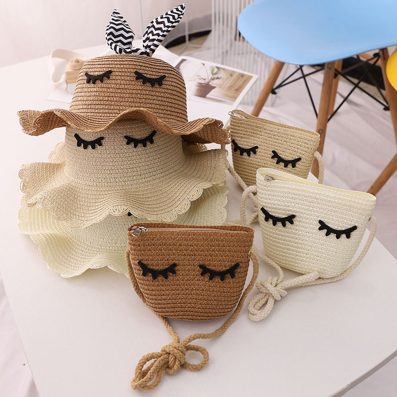 子供の日よけ帽子草編み帽子バッグセット光板帽子胚卸売り子供の日よけ帽子斜め掛け小銭入れ