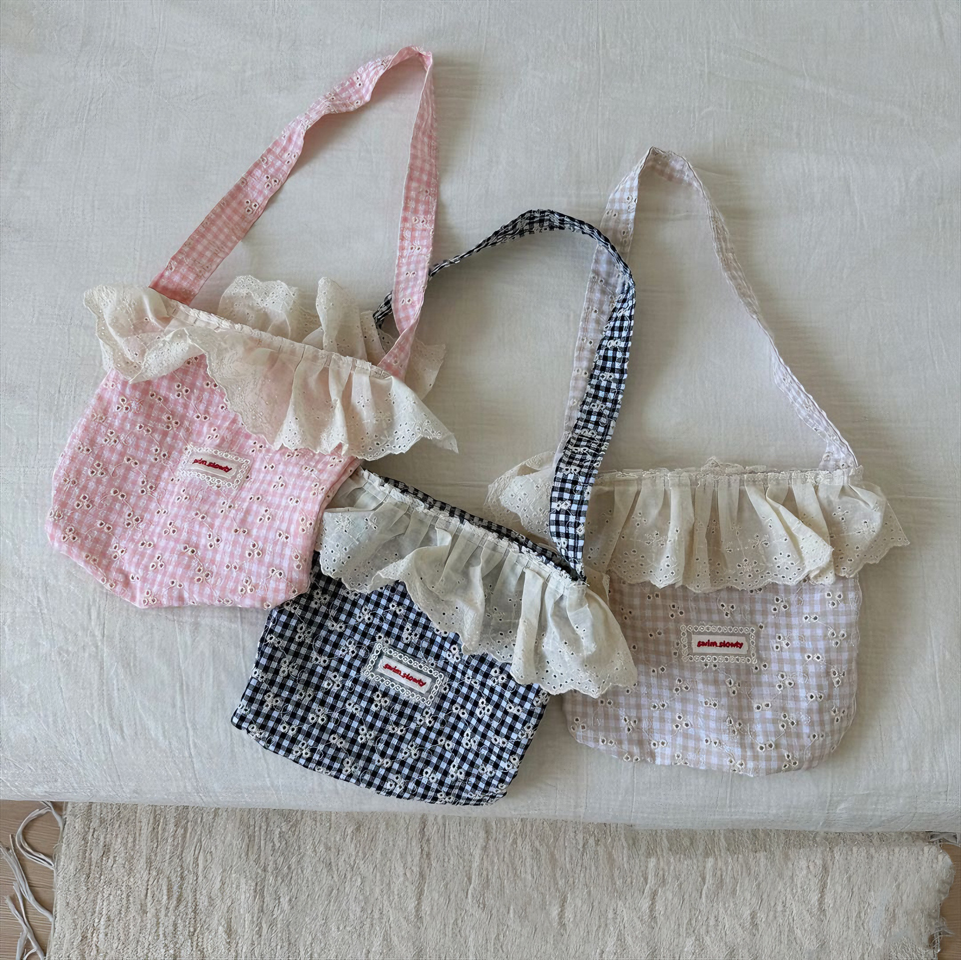 女の子の春夏の新しいスタイルのレースショルダーバッグ、フォレストスタイルのベビーチェック柄小銭入れ、旅行用ポータブルクロスボディバッグ