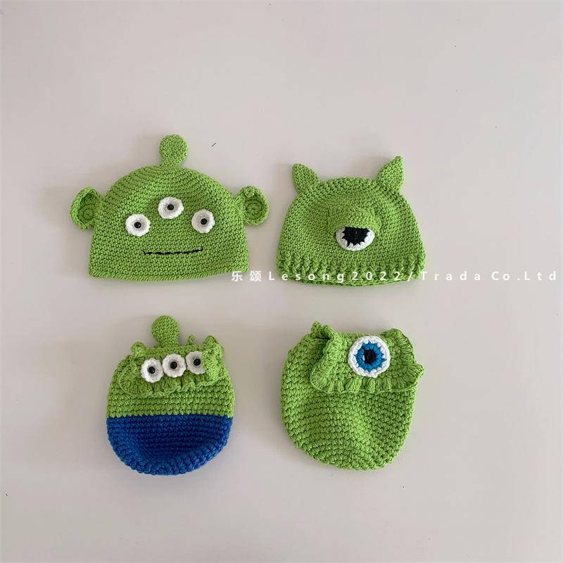 子供用ニット帽バッグセット個性的な手作り赤ちゃんモンスター目男の子女の子小銭入れウールバッグ