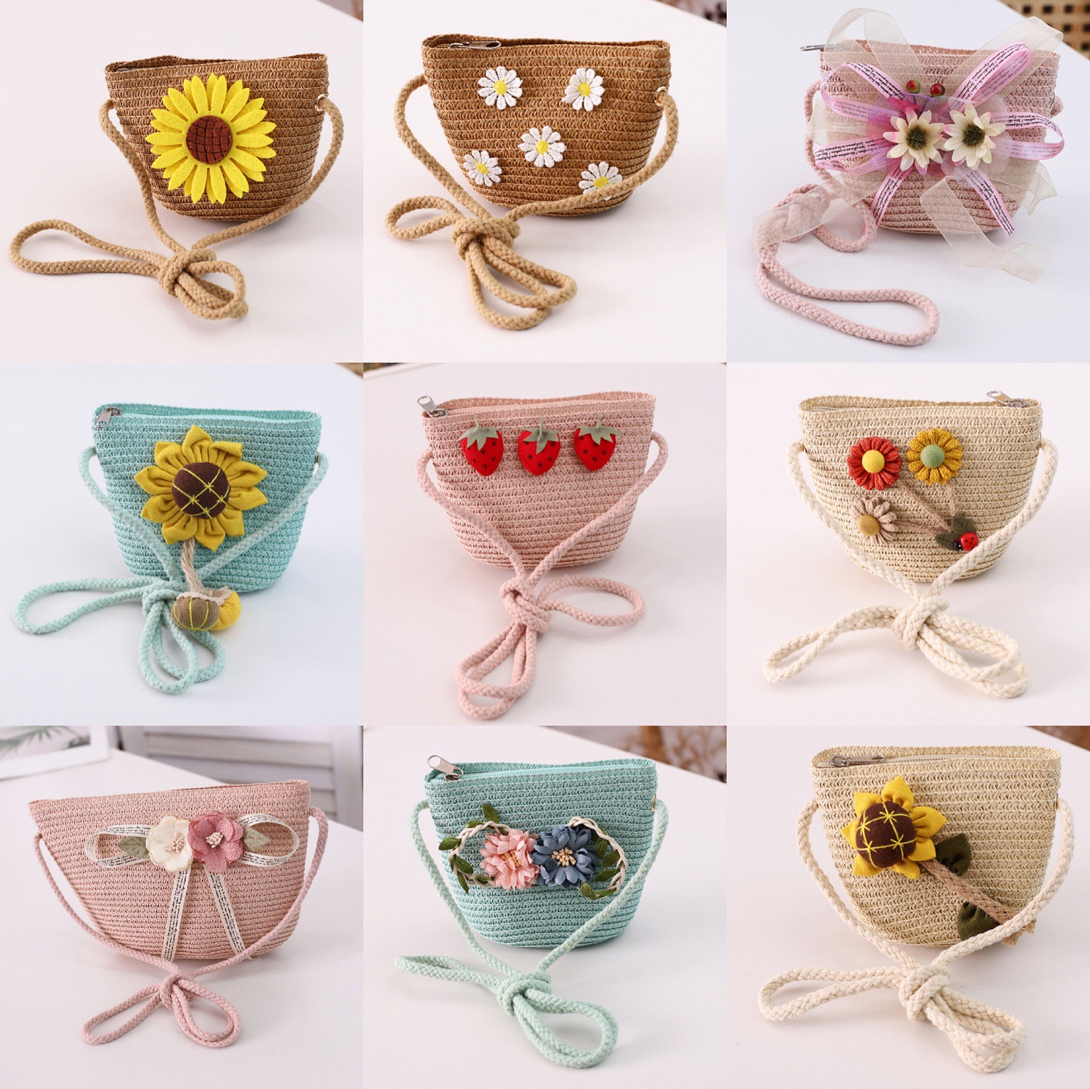 子供用バッグの女の子の斜め掛けのカバンの2024の新型の春夏の日よけの帽子の草は赤ちゃんのファッションの小銭入れを編みます。