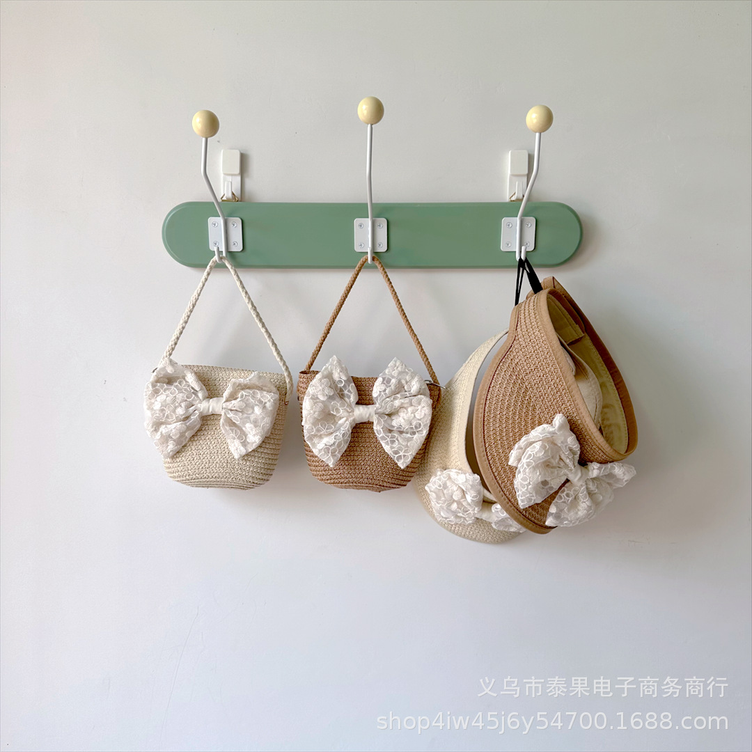 子供用カバンの女の子の日よけ帽子の女の子の斜めショルダーバッグの布芸の蝶結び帽子の麦わら帽子の女性のファッションの小銭入れ