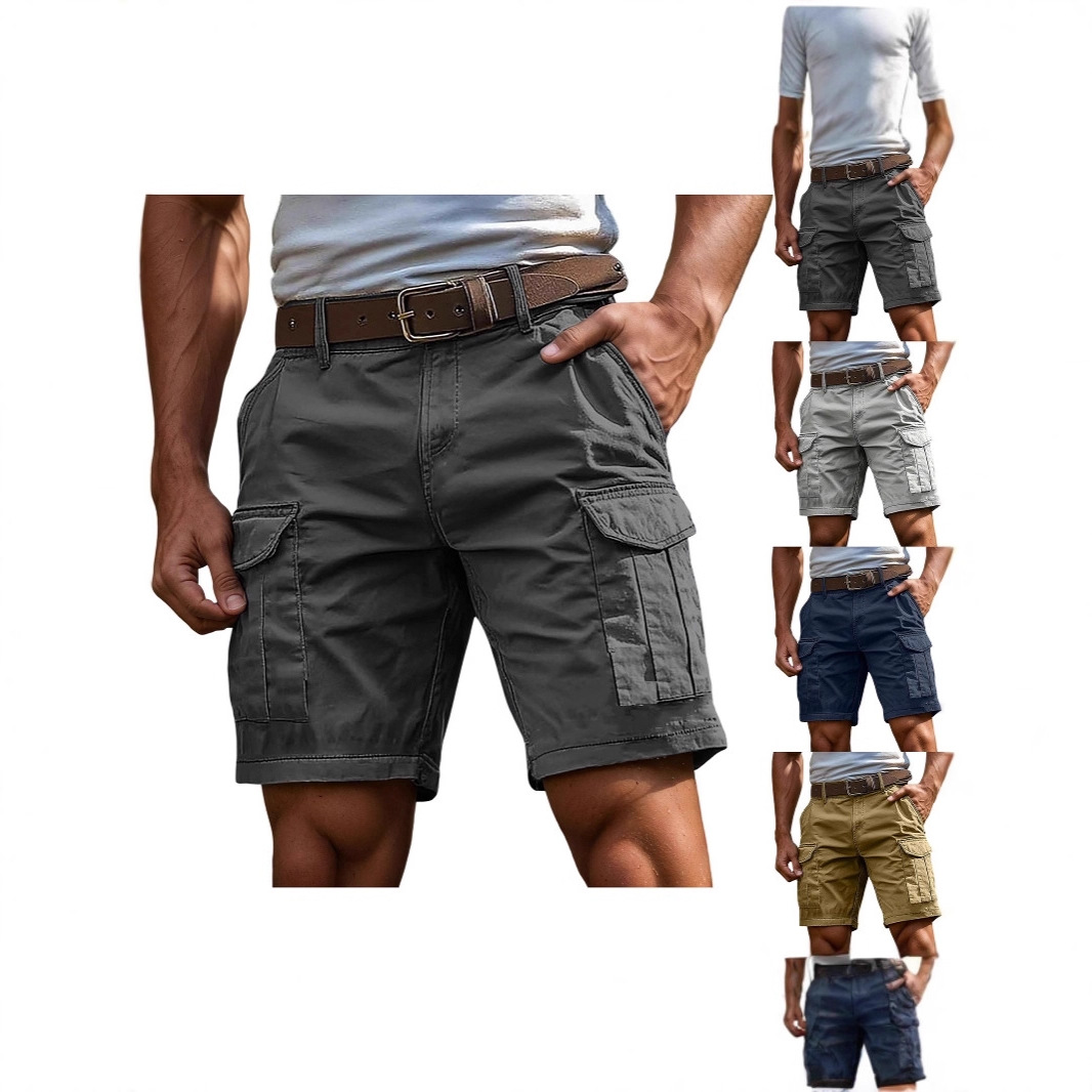 メンズサマーショートパンツ、綿100%、ストレートタイプ、スポーツショートパンツ、多ポケット、ランニング、トレーニング、五分丈パンツ