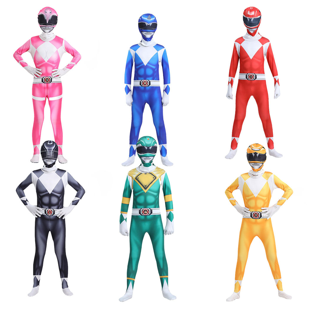 ハロウィン恐竜戦隊コスチューム、ワンピース型のタイトな衣装、子供と大人のコスプレパフォーマンス衣装、スーパービースト
