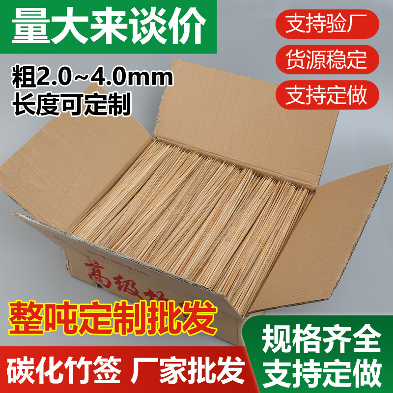 炭化竹串使い捨て特硬広東串油串黒串香焼き串箱包装問屋用