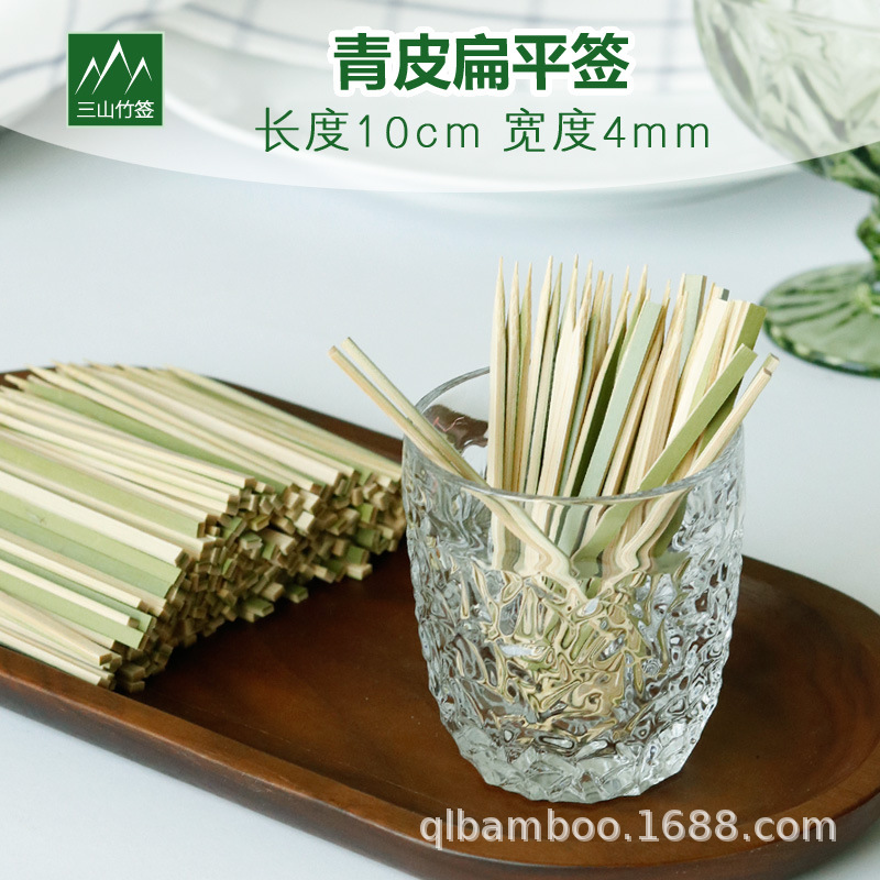 竹串卸売り長さ10cm青皮緑皮広平平串和風焼鳥試食串焼き使い捨て短竹串
