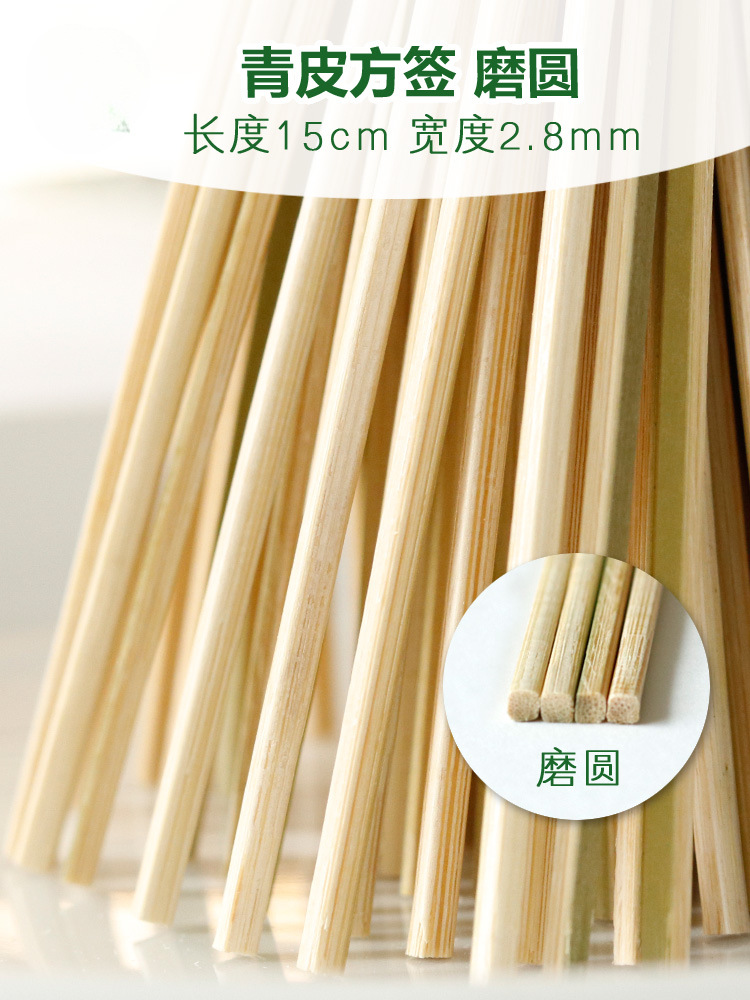 長さ15cm/2mm 正方形 和風焼き鳥料理 業務用使い捨てバーベキュー 細い楕円形の緑の皮の竹串