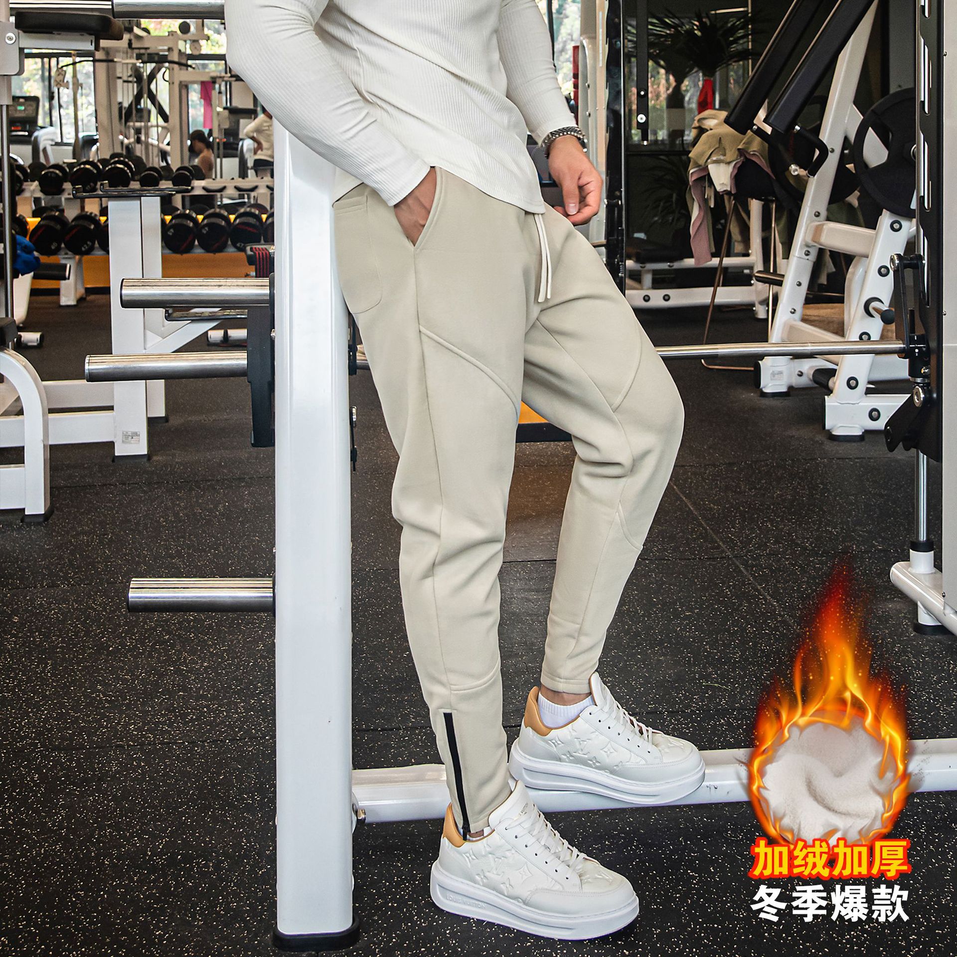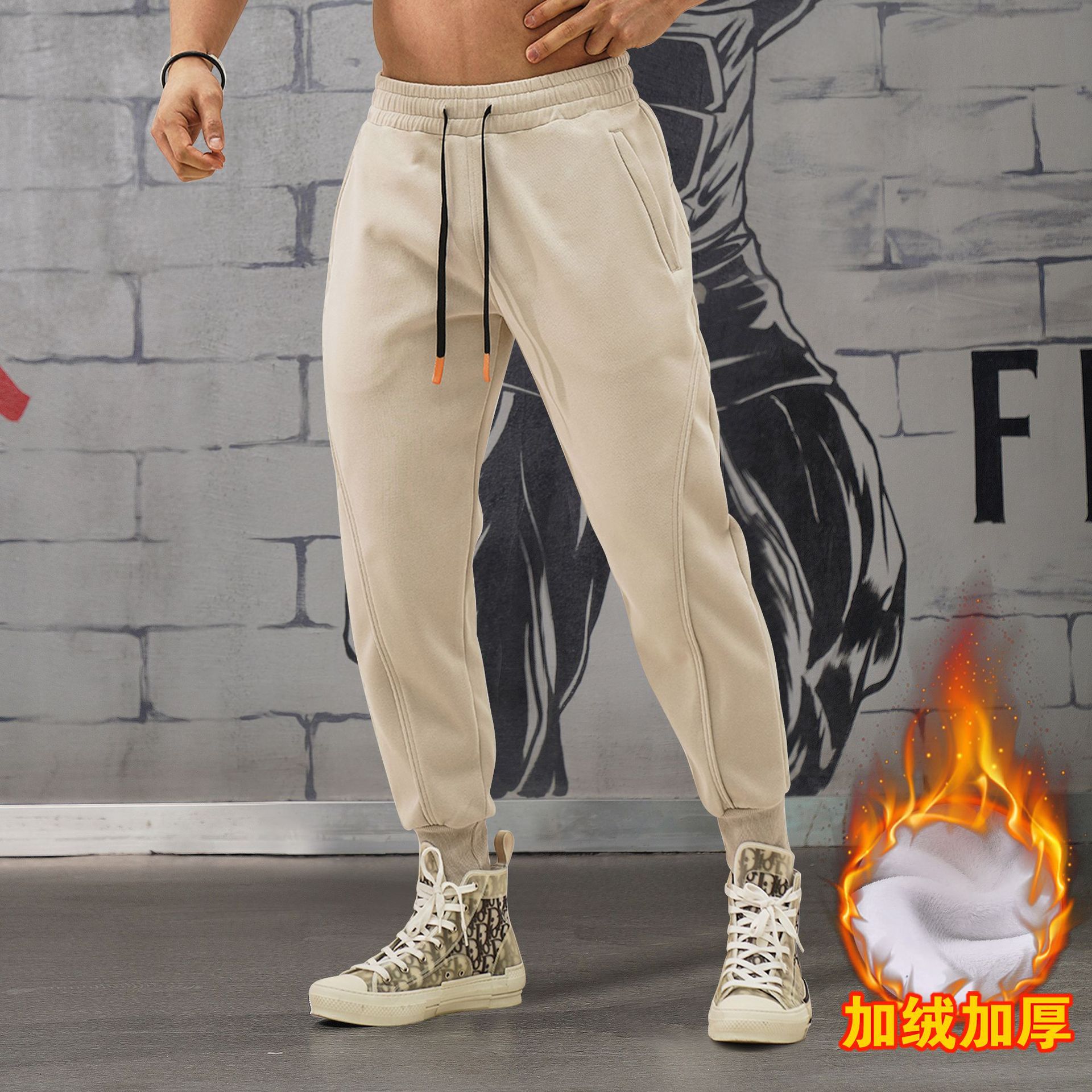 秋冬にベルベットをつけてスポーツパンツを厚くした男性式ランニングフィットネス日常カジュアルパンツトレーニング大ズボン保温パンツ