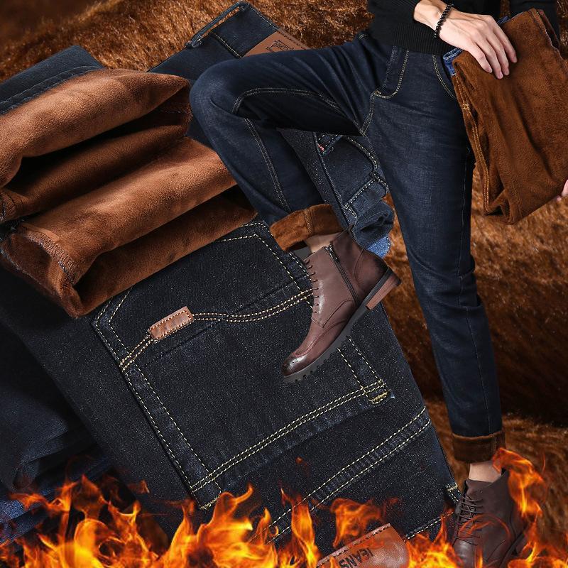 秋冬モデルのベルベットジーンズ男性は保温男性ズボンを厚くして中年のビジネスカジュアルでゆるいストレートが私の外を越えている