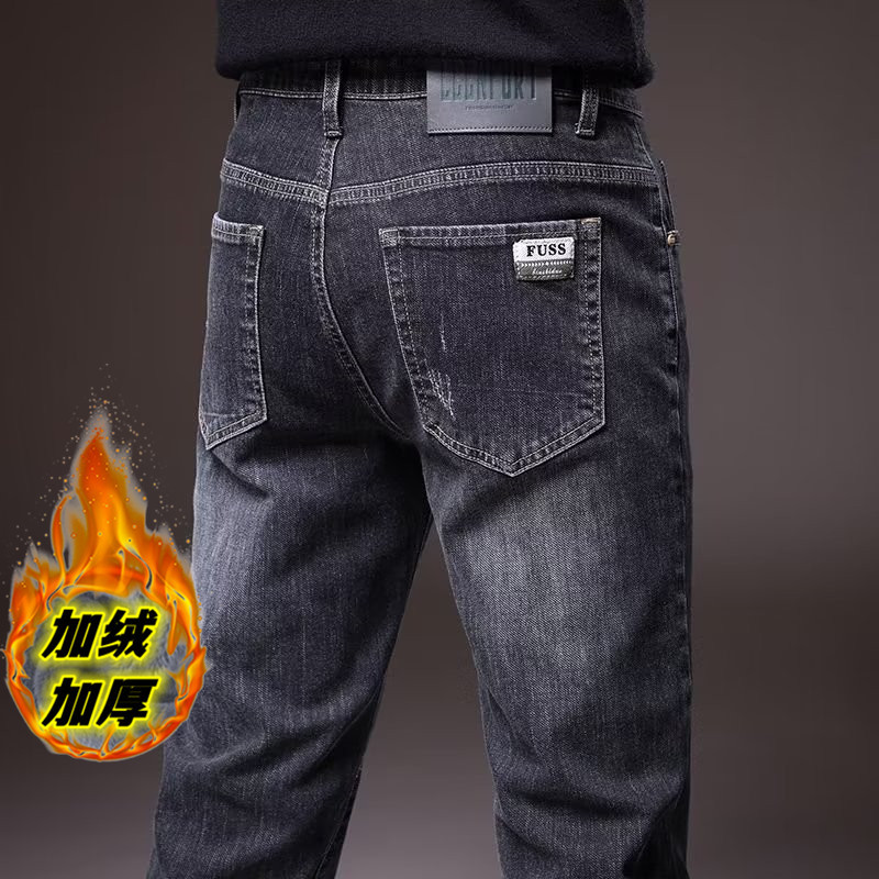工場直売ジーンズ男性秋冬弾力ゆるいカジュアルパンツとベルベットの厚いストレートパンツの代理