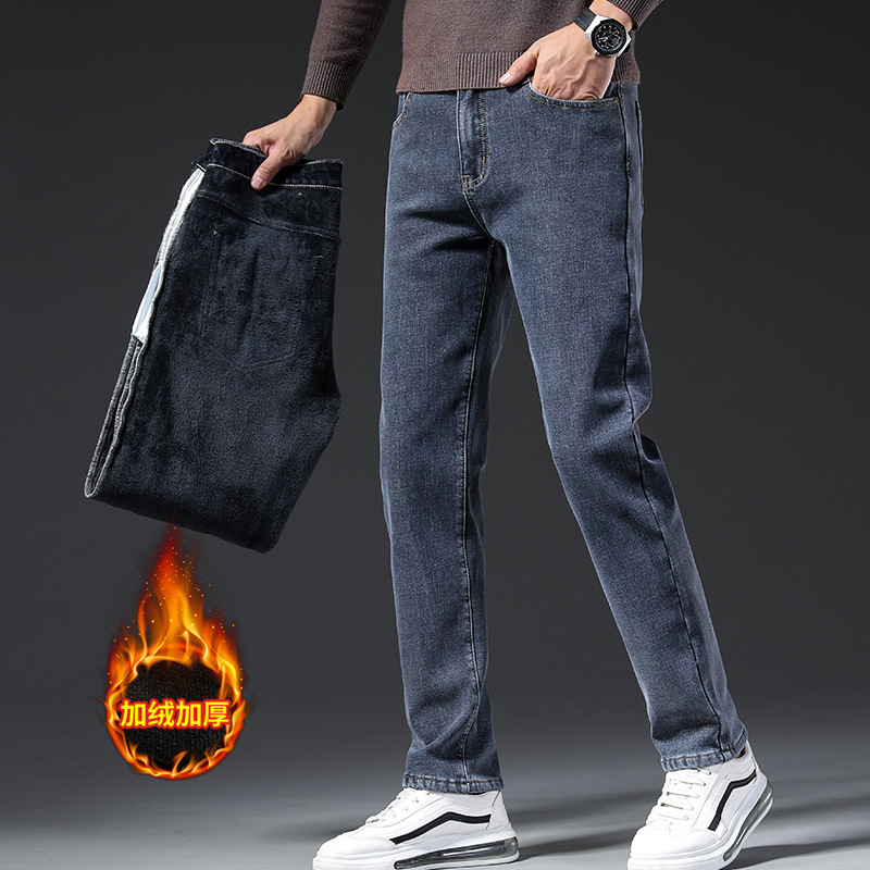 在庫あり 裏起毛厚手デニムパンツ卸売 メンズ秋冬新作ストレート保温メンズ冬用裏起毛パンツ作業ズボン