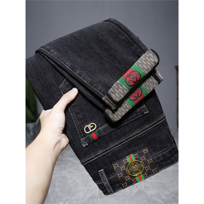 ジーンズ 2025 新しいメンズ春と秋黒ストレートスリムカジュアルパンツハイエンド刺繍ヨーロッパとアメリカの春スタイル