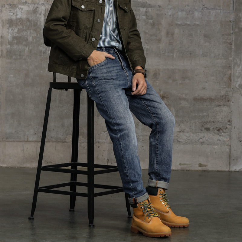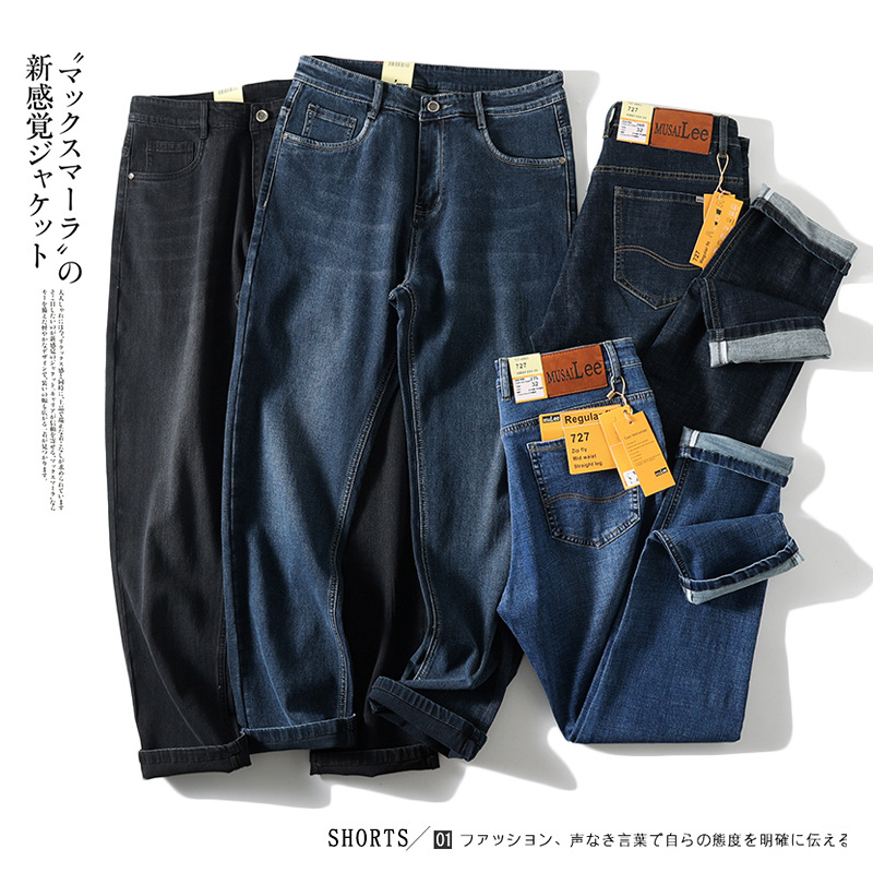 国内モデル2023年秋冬の酵素水洗い! 新型男性レトロ百合ストレートジーンズ長ズボン