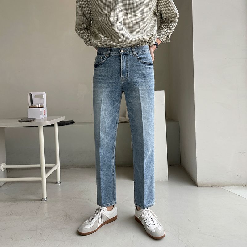 Bj直筒修身九分ジーパン男春レトロ百合韓版高街水洗い9分カジュアルズボン