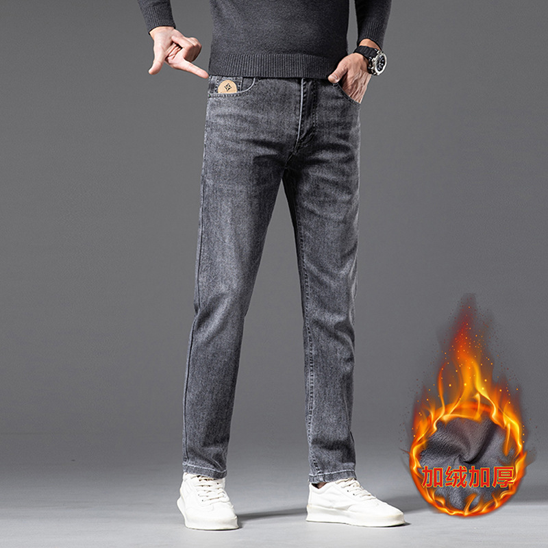 品質とベルベットの厚いジーンズ男2023冬の新型潮版韓国版シンプルなストレートジーンズ男長ズボン男