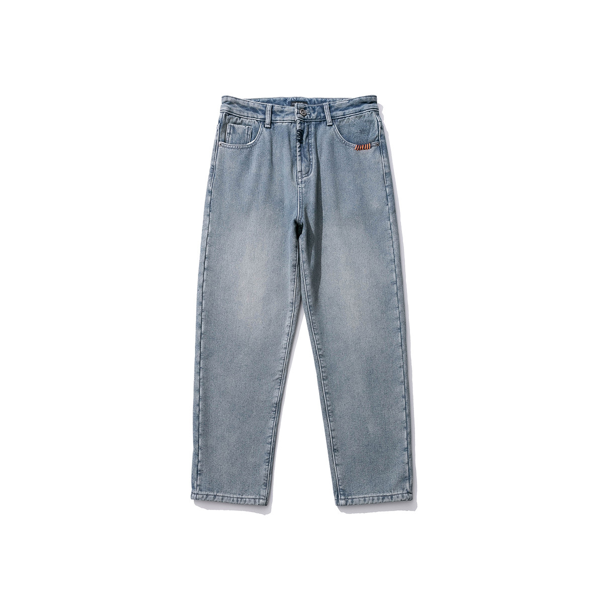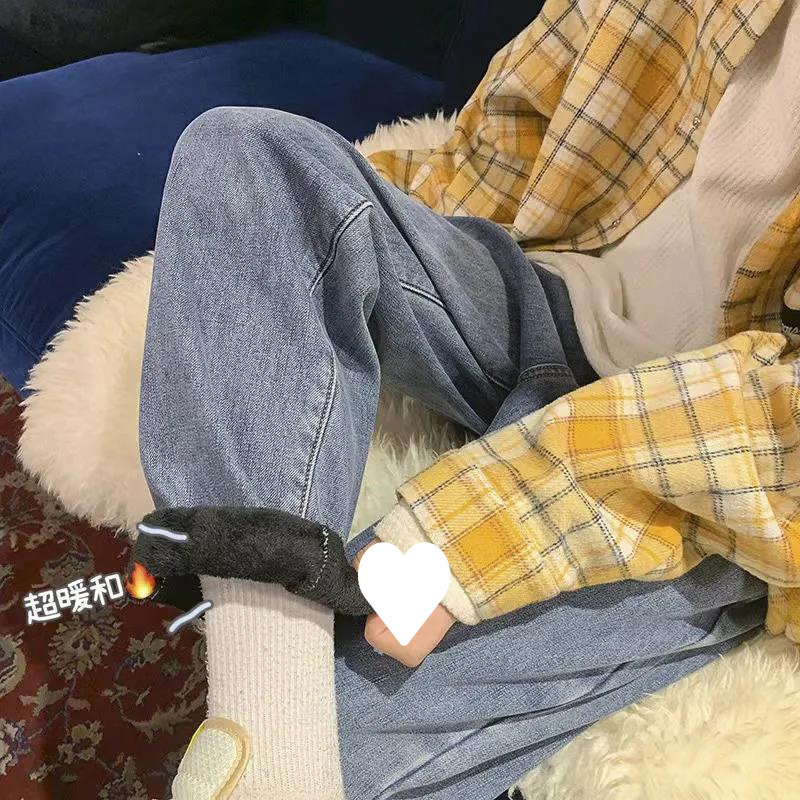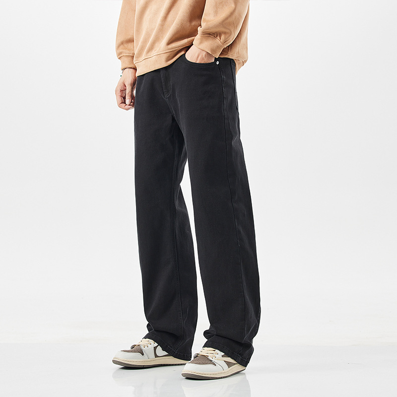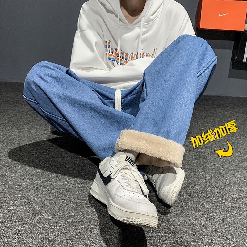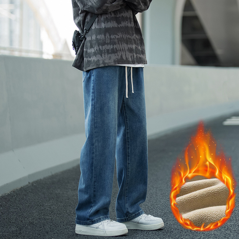 ストレートジーンズ男型秋冬ベルベット男潮牌高街レトロゆるい広脚長ズボン男