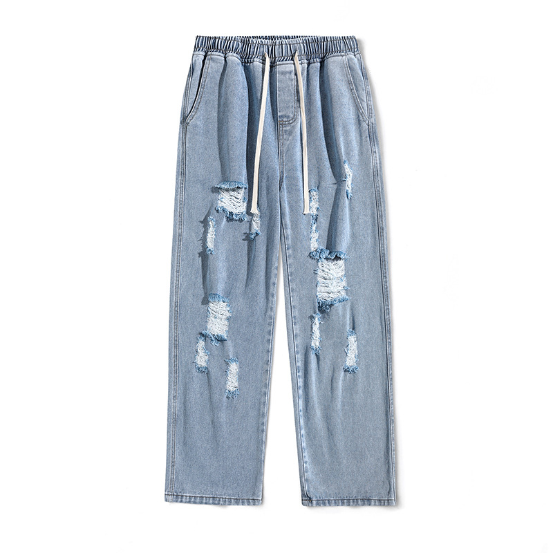 穴を割ったジーンズ男2023新ファッションブランドのゆるいストレートファッションカジュアルな薄いズボン
