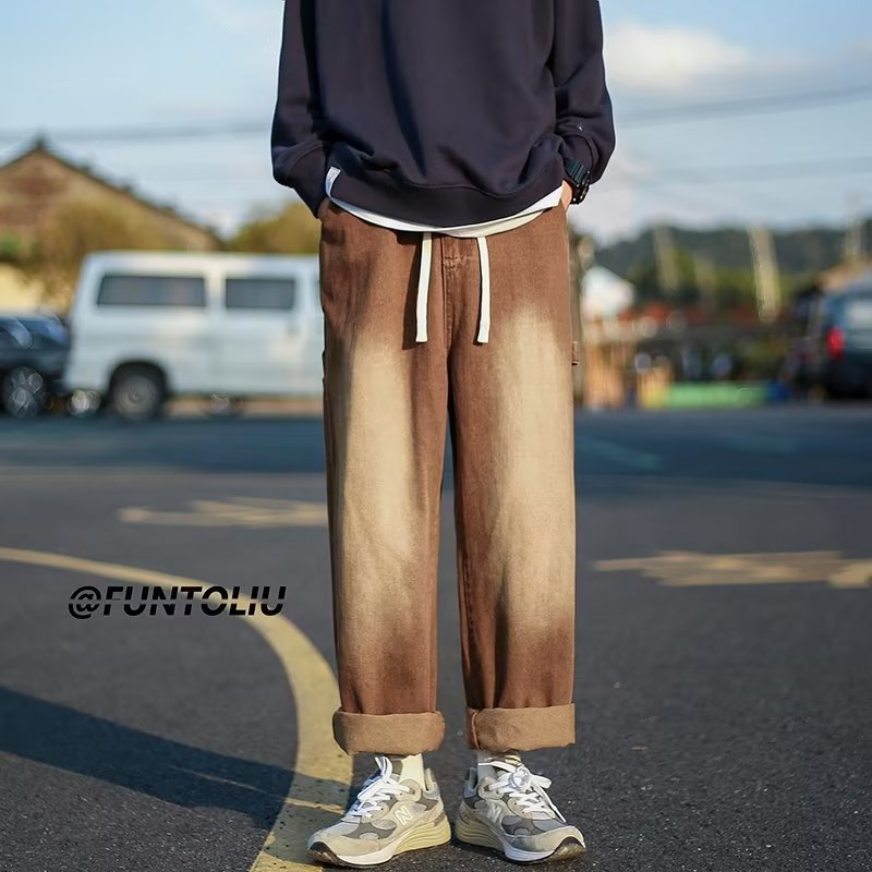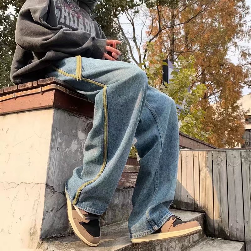 クロスボーダー卸売りクロスボーダー卸売り2023秋の新型男性高街港風ストレートジーンズ