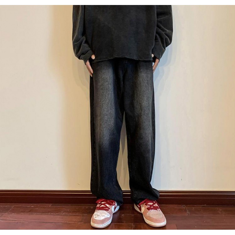 アメリカ式の高い街の水洗いのジーパンの男性の秋の新型のまっすぐな筒の百合のカジュアルなズボンのins港の風のゆったりしているモップのズボン
