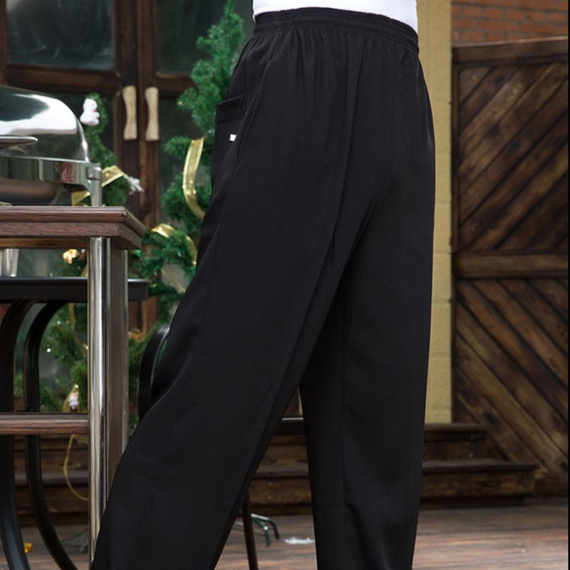 薇欣琪レストランの従業員の仕事のズボンの黒色のホテルの料理人の男女の同項の弾力の全ゴムのカジュアルなズボン