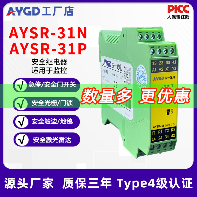 Anyi Optoelectronics AYSR-31N 多機能安全リレー緊急停止安全ライトカーテン安全ドアロックカーペットメーカー
