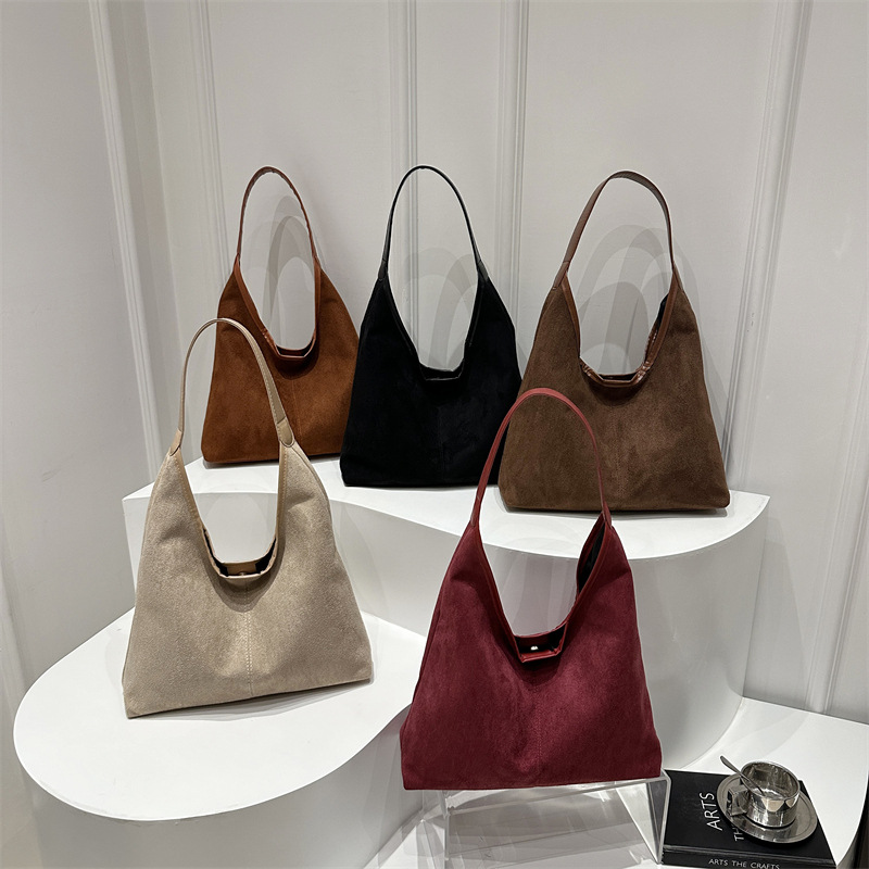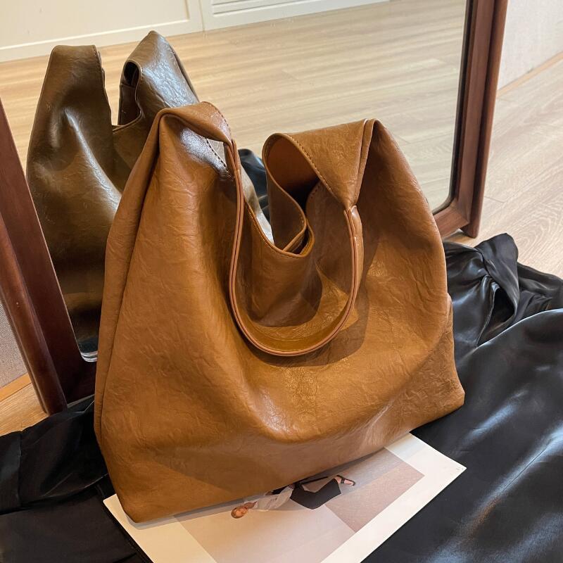 2024 新大容量ポータブルショルダーバッグ鹿革レトロニッチ通勤バッグ多用途トートバケットレディースバッグ