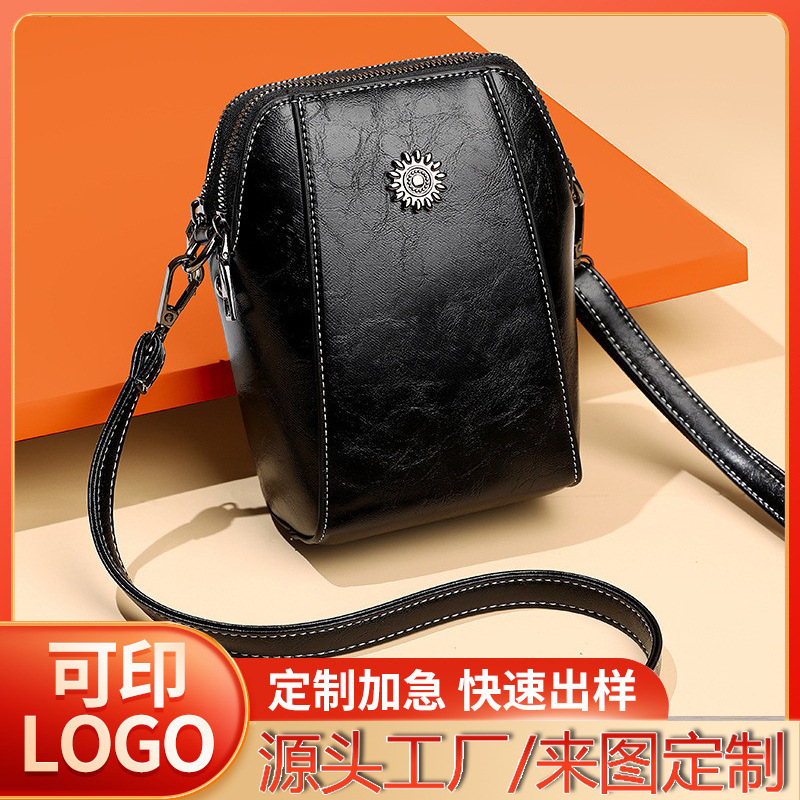 本革の女性カバンの携帯電話の包みの2024の新型の頭の層の牛革の肩の斜めのショルダーバッグの百合の柔らかい皮の多層の小銭入れ