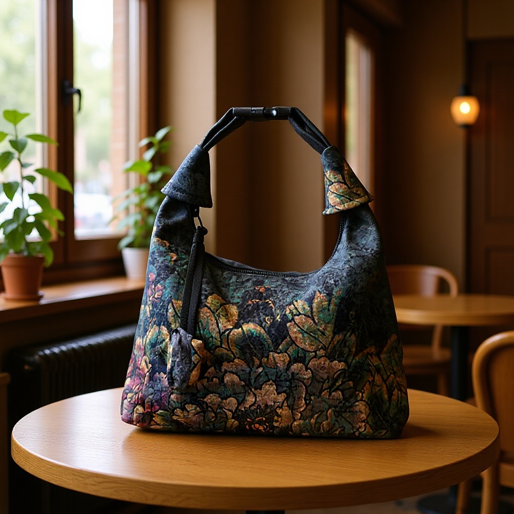香雲紗三日月包斜めショルダーバッグ中国風レトロ引き縄百合装飾ハンドバッグ