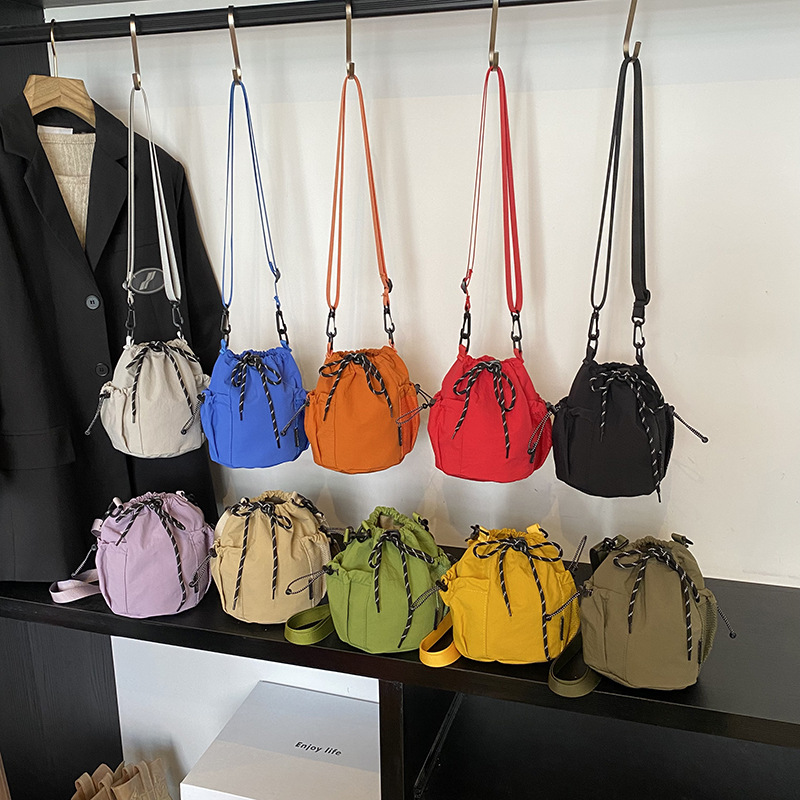 ニッチデザインのナイロン巾着クロスボディバッグ、新しいアウトドアスポーツとレジャーショルダーバッグ、ファッショナブルで多用途なバケットバッグ