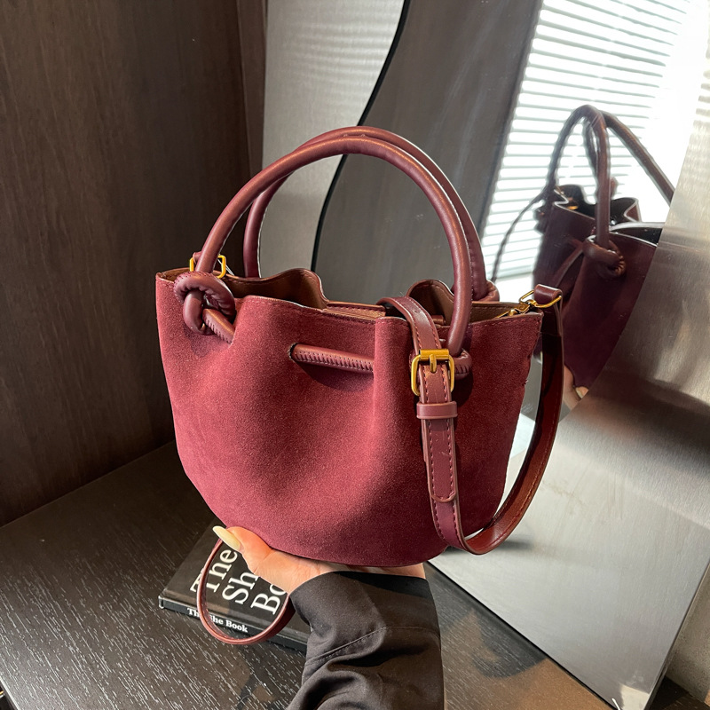 クロスボーダーニッチデザインレトロつや消しハンドバッグレディース4新しいスタイルシンプルで高品質の通勤クロスボディバケットバッグ