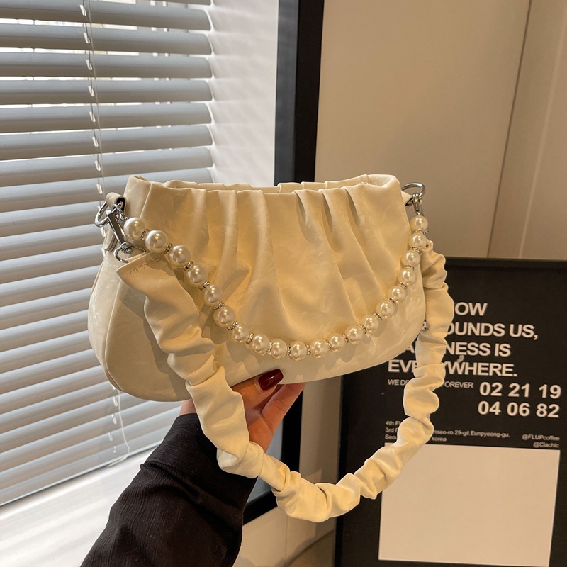 甘い少女の真珠のカバンのハンドバッグの女性のファッションの百合のしわの斜めのショルダーの雲のカバンのミニ携帯の小さいカバン