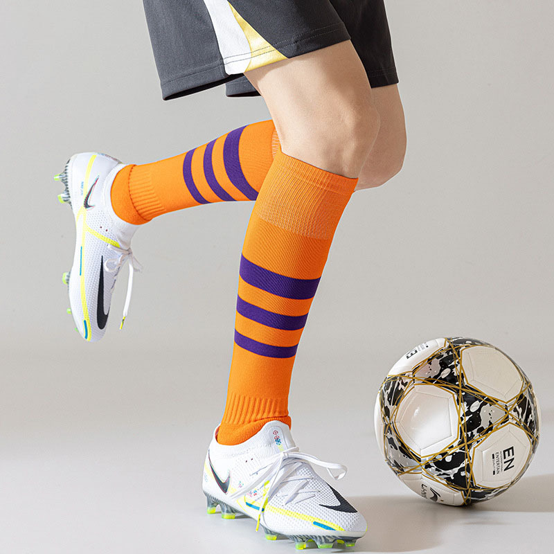 メーカー直販のロングスポーツサッカーソックス、滑り止め、吸水性素材、快適で通気性があり、スポーツトレーニングに適しています、卸売