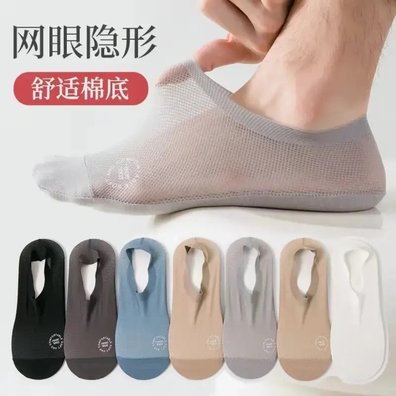 【メンズアイスシルク】夏用ソックス ショート 薄手 通気性 メッシュ シンプル ビジネス 落ちない 浅口ボートソックス その他