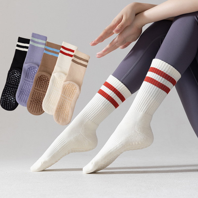 ヨガソックス女性のミッドカーフソックス秋と冬の純粋な綿ノンスリップシリコーン屋内フィットネスピラティス女性のアウターウェアスポーツソックス