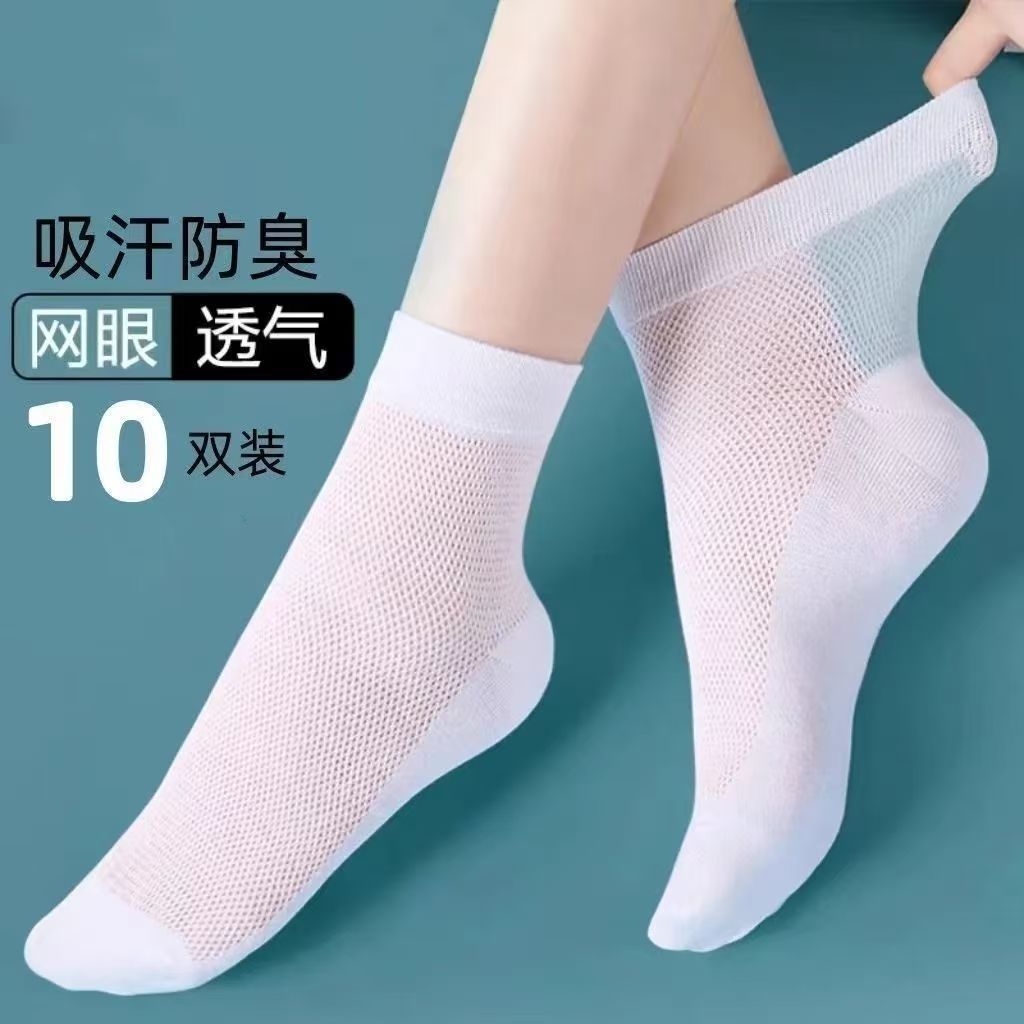 通気性と吸汗性に優れた売れ筋レディースソックス0夏用10純綿薄手白ミッドチューブ消臭