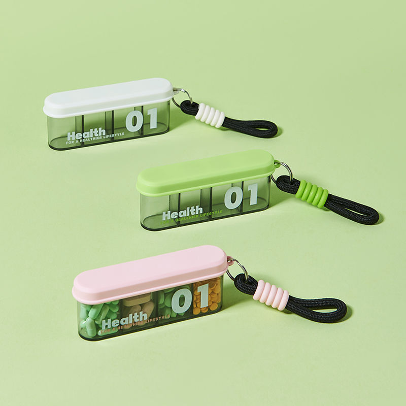 新しい分割ポータブルピルボックス、旅行用ミニピルボックス、密封された防塵保管庫