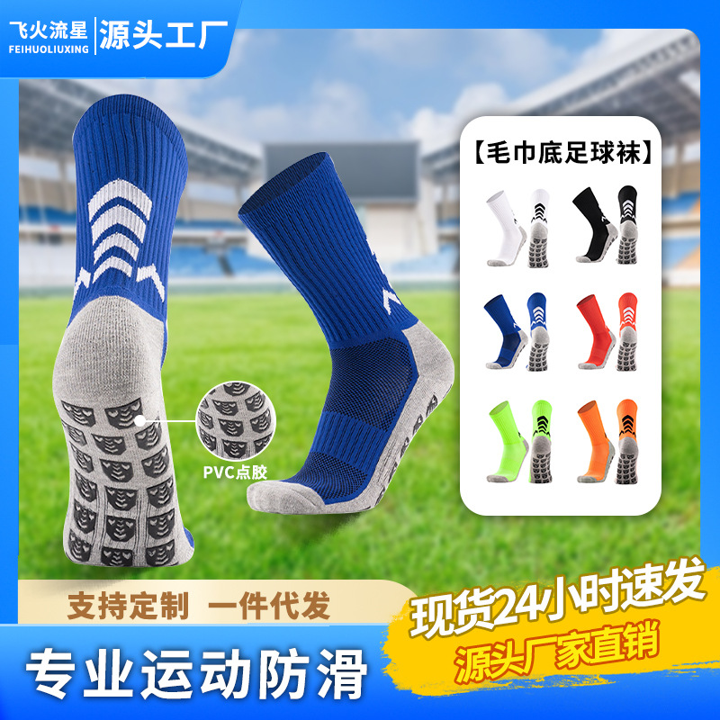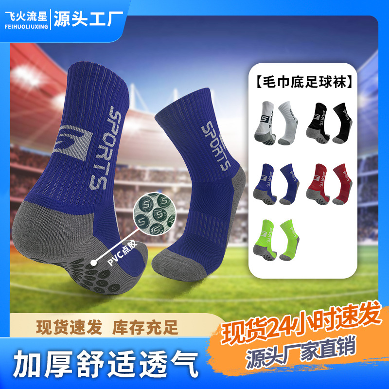 春と夏のプロサッカーソックスメンズロングチューブドットソックス吸汗性ハイソックスタオルボトムスポーツ滑り止めソックス卸売
