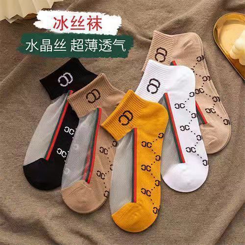 10足のINSカードの水晶のアルファベットCCの女性のソックスの夏の薄いタイプの通気性のガラスのシルクの船の靴下のレースのストッキング