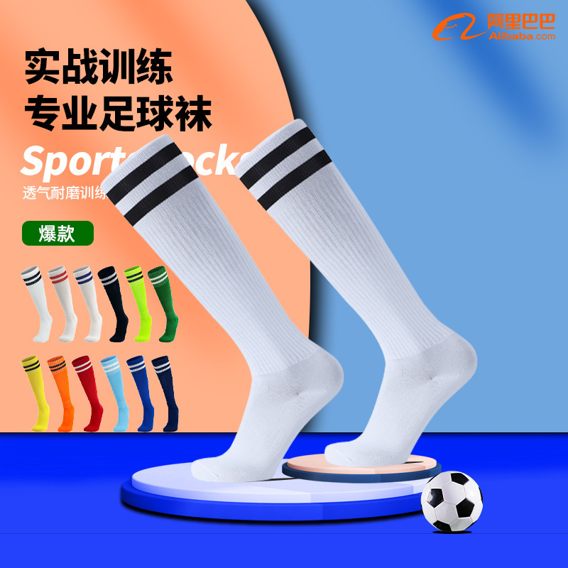 クロスボーダー成人児童純色サッカー靴下タオル底膝ストッキング学生スポーツ靴下Socks