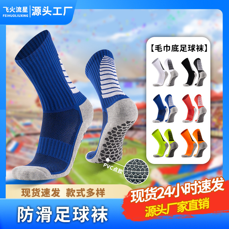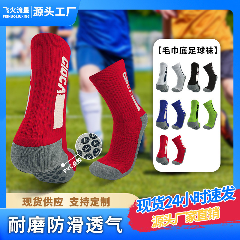 クロスボーダー専門サッカー靴下タオル底運動靴下点ゴム滑り止め訓練靴下厚いアウトドアランニング中筒靴下